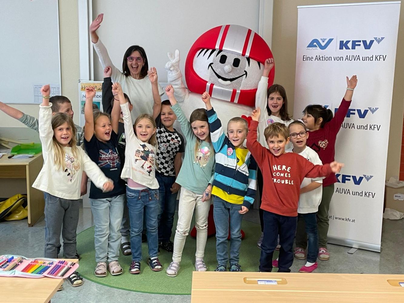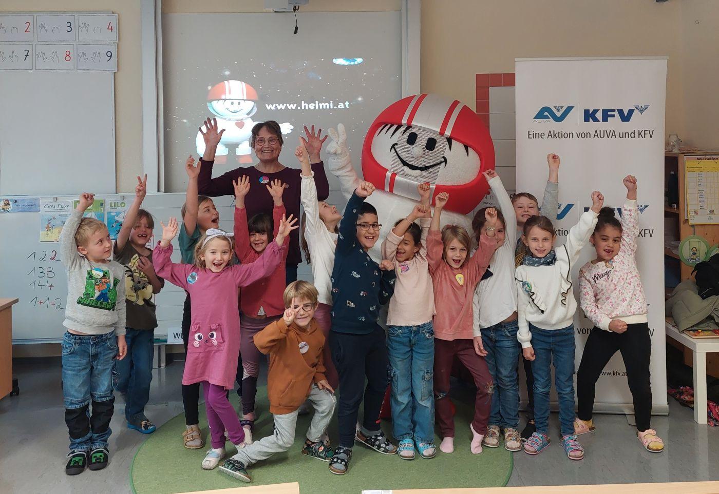 Letzte Woche konnten die Kinder der 1. Klassen HELMI und seinen Freund Sokrates hautnah kennenlernen. Zusammen mit den Mitarbeiterinnen Steffi und Rebecca wurde den Kindern auf spannende Weise das Thema Verkehrssicherheit spielerisch näher gebracht.