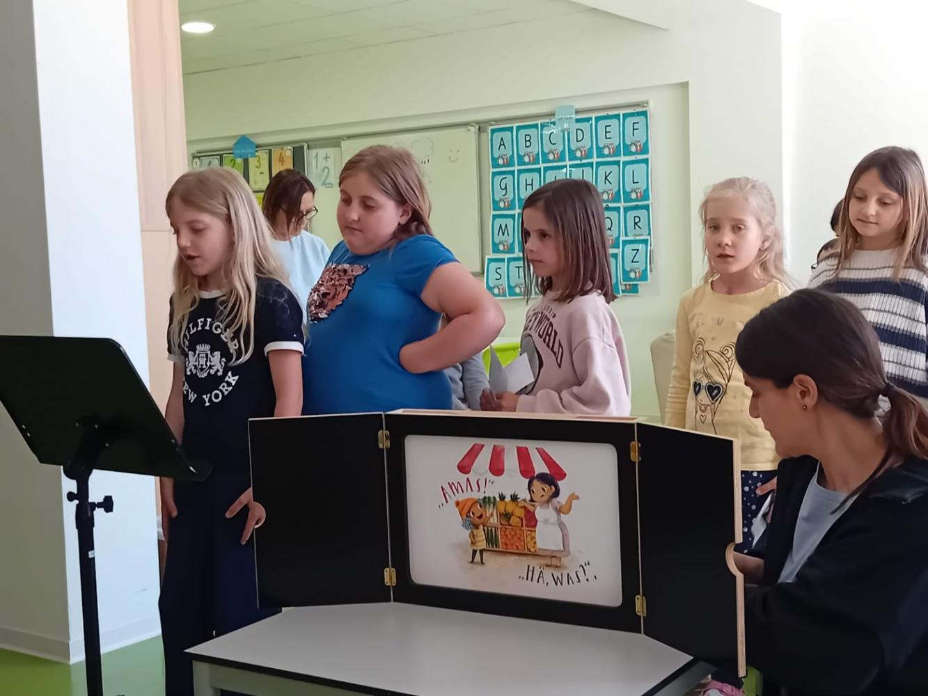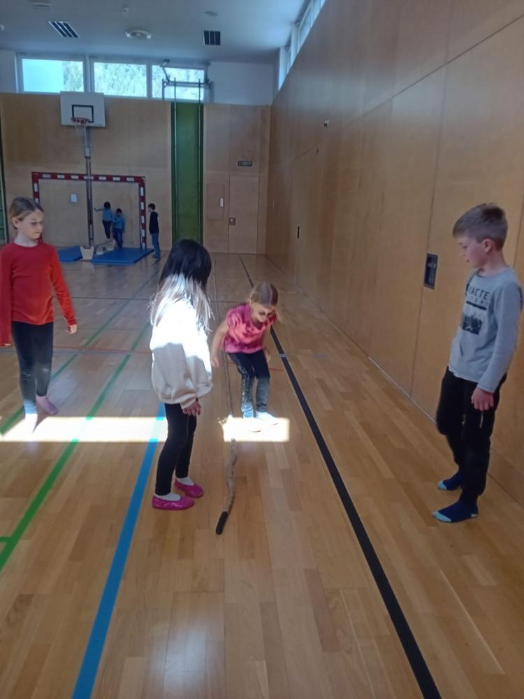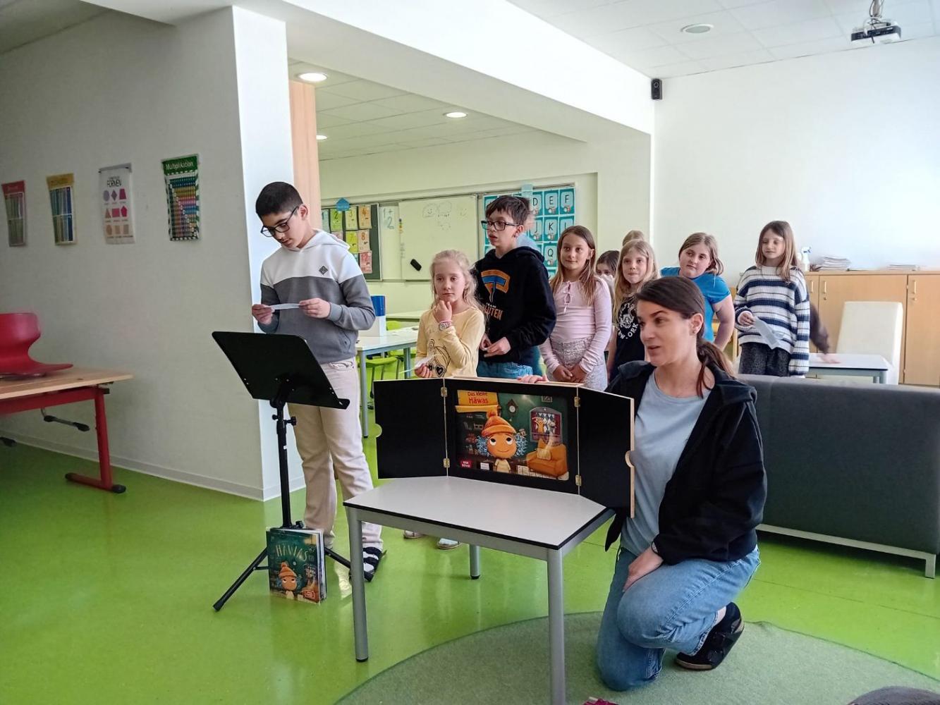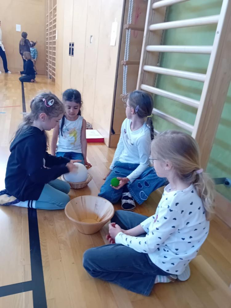 Die Kinder der 3. Klassen gestalteten ein besonderes Highlight für diesen Tag. Mit viel Engagement präsentierten sie ein Erzähltheater zum Bilderbuch „Das kleine Häwas“, das die zukünftigen Schulkinder aufmerksam und begeistert verfolgten. Danach ging es schwungvoll weiter in den Turnsaal, wo verschiedene Bewegungsstationen zum Ausprobieren, Balancieren, Hüpfen und Lachen einluden. Dabei standen Spaß, Bewegung und gemeinsames Erleben im Mittelpunkt.