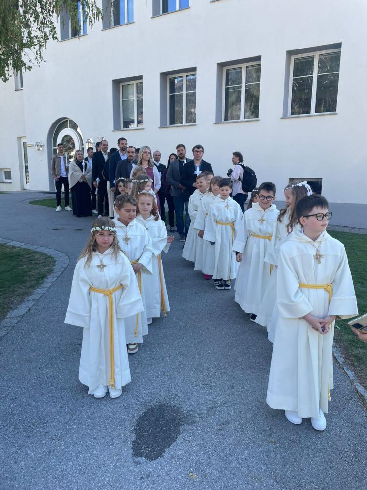 Am Samstag, den 18. April 2026, empfingen die Kinder der Klassen 2a und 2b zum ersten Mal die Heilige Kommunion. Ein großer Tag für die Kinder und ihre Familien.
