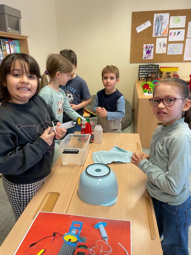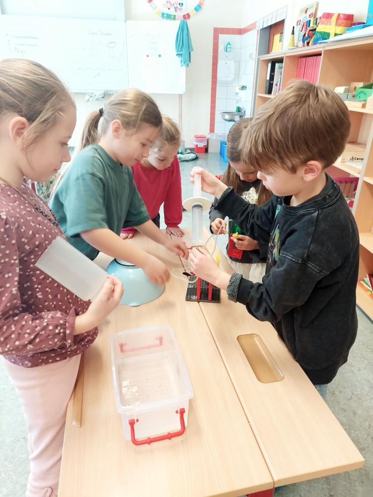 Mit viel Spaß und Neugier erforschten die Kinder anhand der Anschauungsmaterialien und zahlreichen Experimenten die Welt des Wassers – von der Quelle bis zur Nutzung im E-Kraftwerk.