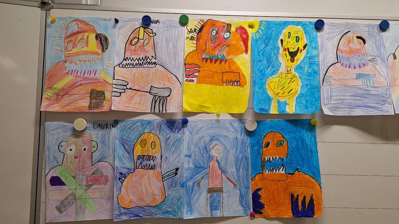 Die Kinder der 2b versuchten sich anschließend gleich selbst als "Gefühle-Künstler" und gestalteten ihre ganz eigenen "Lebensgeister", in die sie verschiedene Emotionen malerisch und zeichnerisch verpackten.