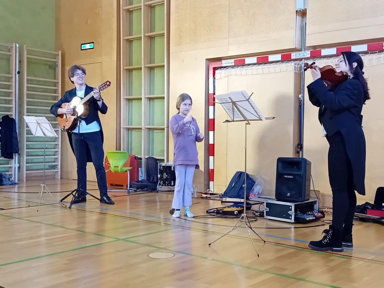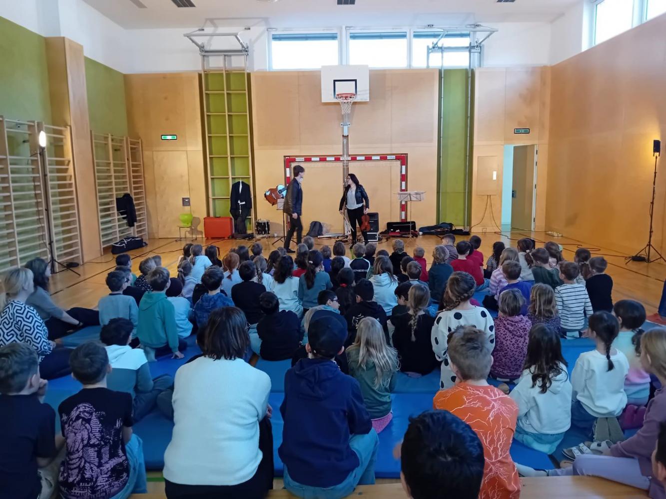 Die abwechslungsreiche Mischung aus Musik, Bewegung und Interaktion machte das Konzert zu einem echten Ohrenschmaus für alle Schüler:innen. Lachen, Staunen und strahlende Augen begleiteten die Darbietungen der Musikerinnen, die es großartig verstanden, die Freude an klassischer Musik spielerisch zu vermitteln.