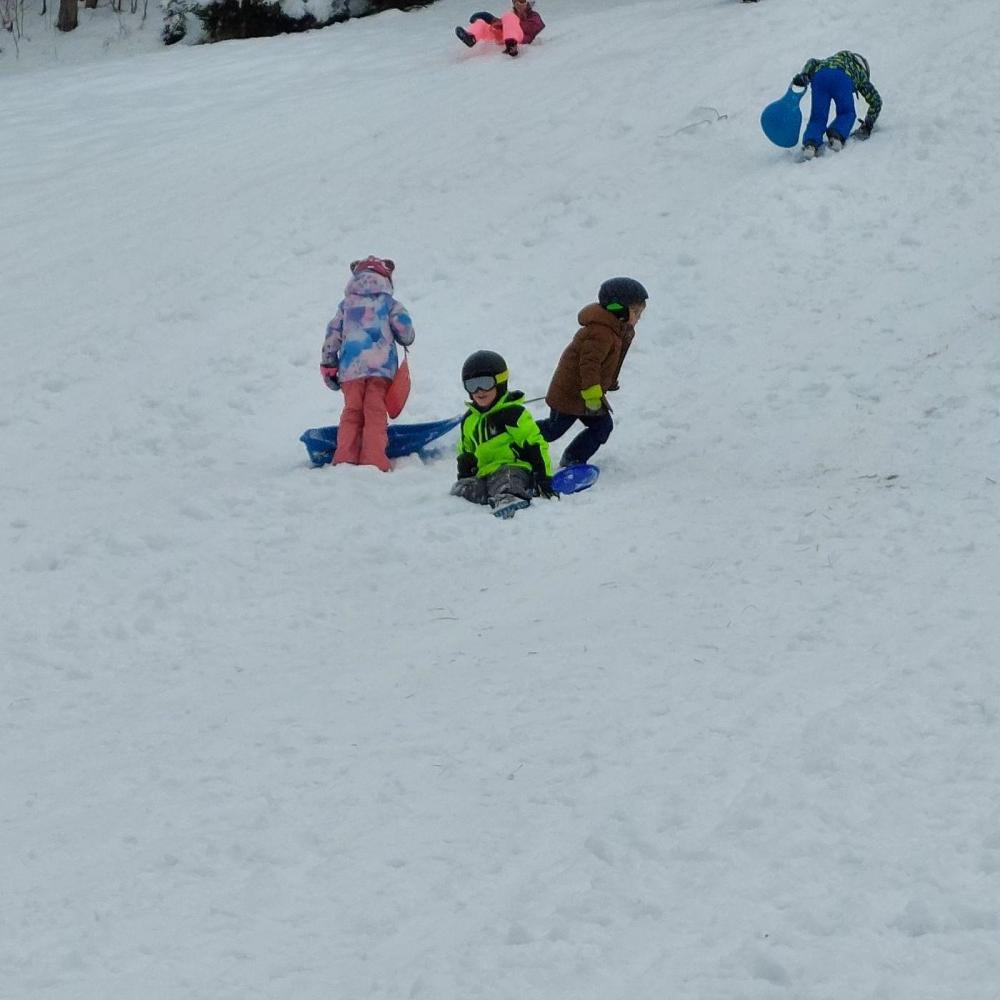Endlich hatte es geschneit und auf den Feldern blieb der Schnee liegen. Da zögerten wir nicht lange und verlegten den Sportunterricht ins Freie. Voller Vorfreude spazierten die Kinder der Klassen 1a und 1b mit ihren Lehrerinnen in die Leithe, um dort den Hang mehrmals hinunter zu rutschen. Das machte allen riesigen Spaß, das auf den Fotos zu erkennen ist.