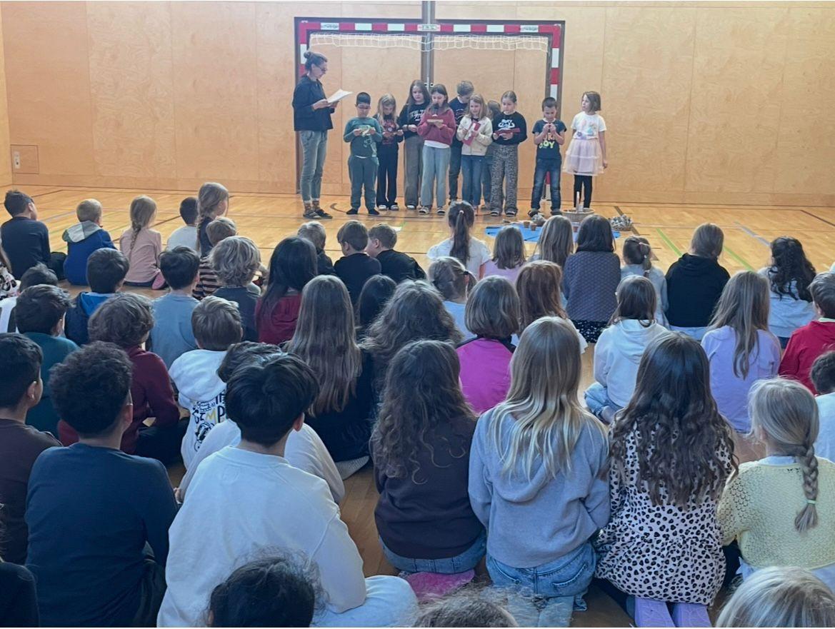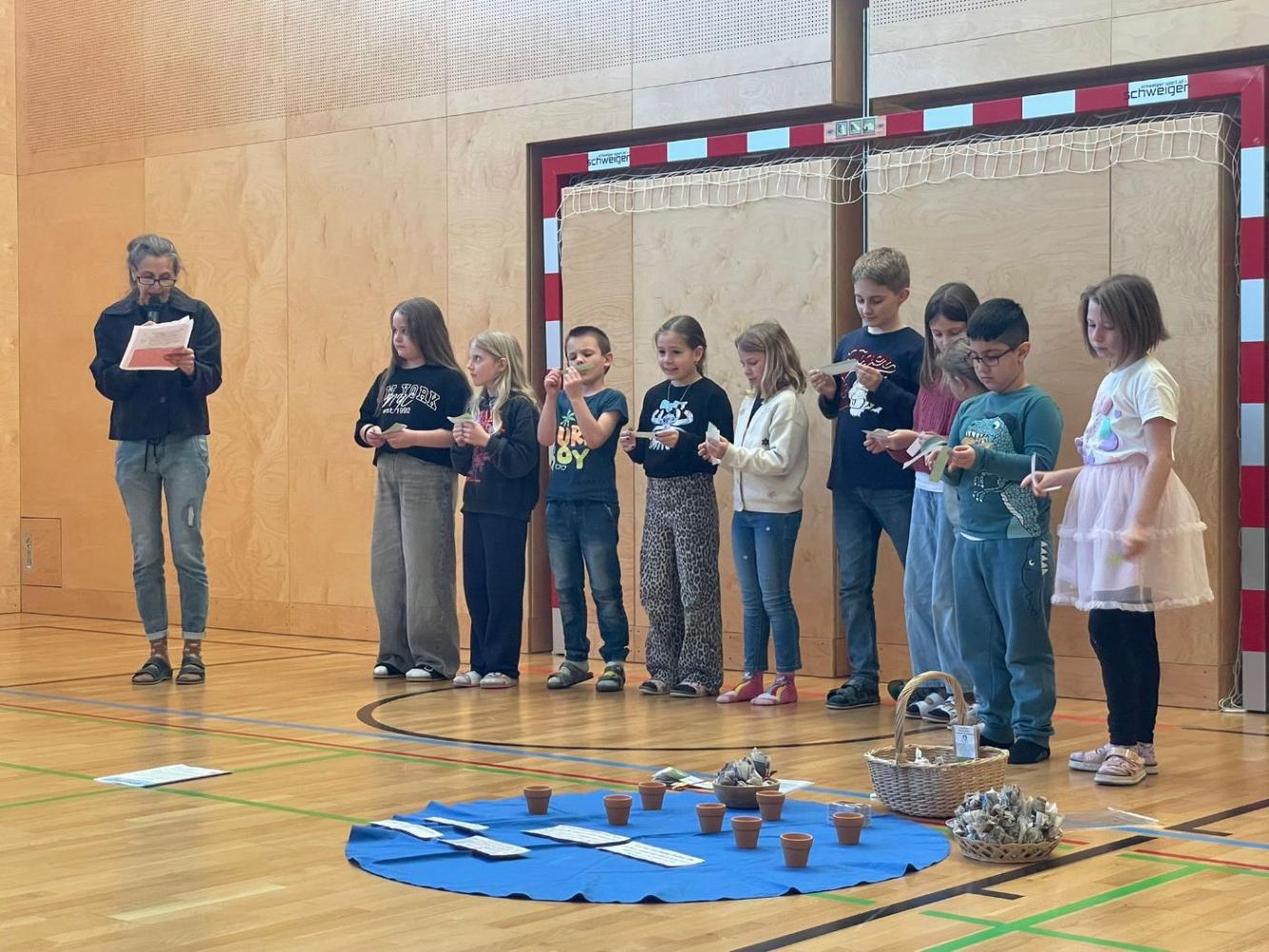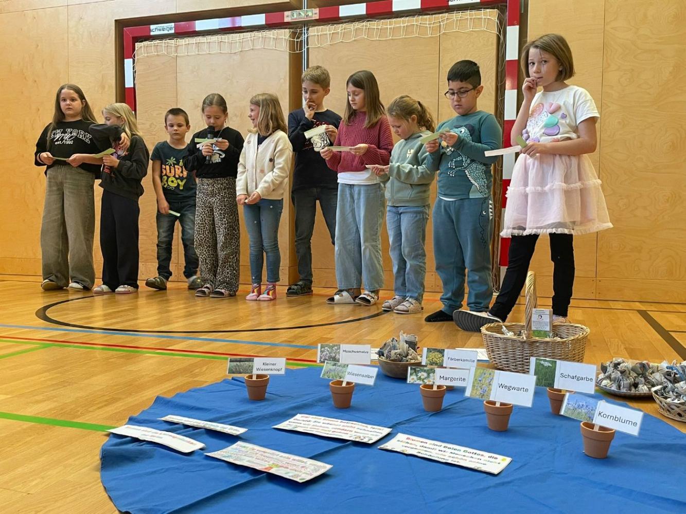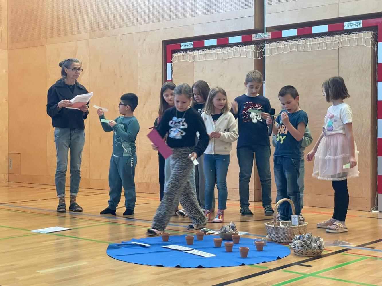 Im Turnsaal haben wir unser Projekt den anderen Tu es Day-Gruppen, ihren Lehrpersonen und unserer Frau Direktorin vorgestellt. Anschließend erhielten alle eine Samenkugel sowie ein Rezept, damit die Kinder zu Hause selbst Samenkugeln herstellen können. Danach haben wir gemeinsam Ideen gesammelt, was jede Gruppe mit ihren Samenkugeln machen könnte: