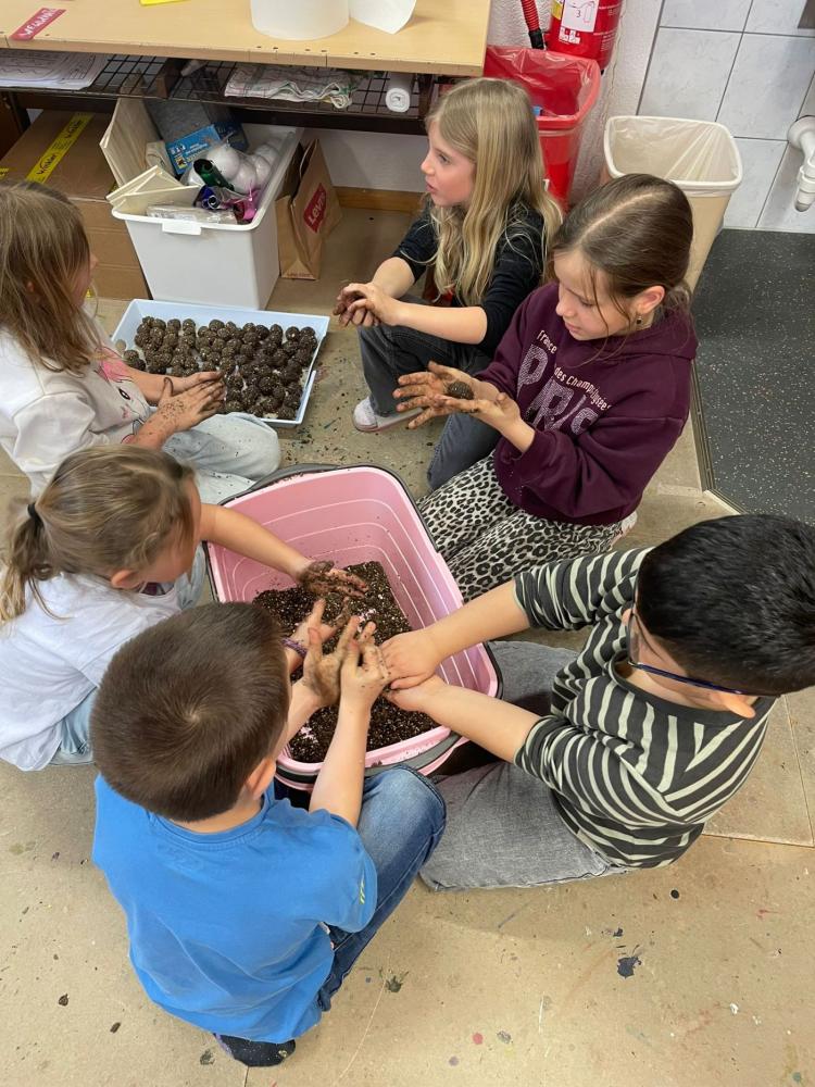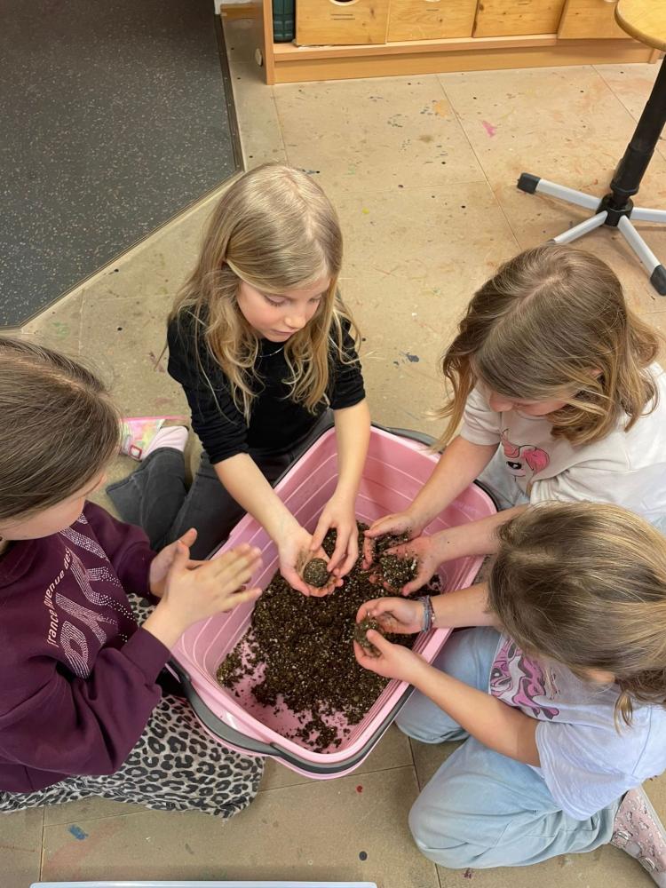 Mit dem Frühling naht die Gartensaison. Wir, die Tu es Day – Gruppe 7, haben in den letzten Stunden kleine Samenkugeln hergestellt. Diese Kugeln enthalten Samen von heimischen Blumen wie Kornblume, Margerite, Wiesensalbei und viele mehr – ideal, um Wiesen und Böschungen bunter zu machen. Aus den Samenkugeln wachsen bunte Blumen, die Bienen, Hummeln und Schmetterlinge anlocken. Die Insekten finden dort süßen Nektar und Pollen zum Fressen. Wenn viele Blumen wachsen, haben sie genug zu essen und können gut leben.