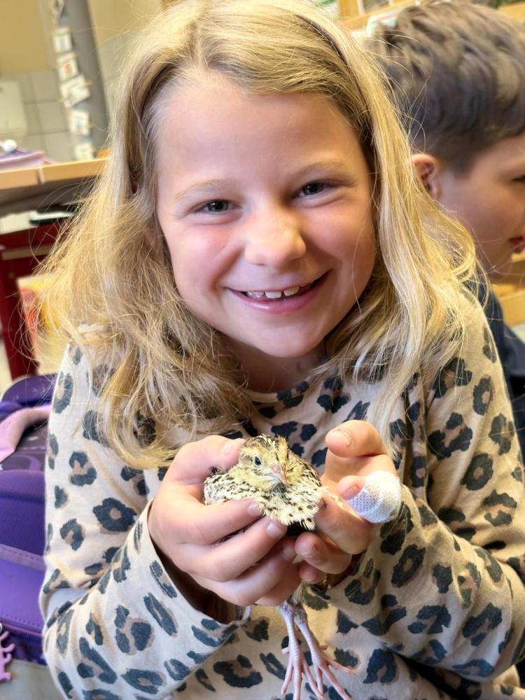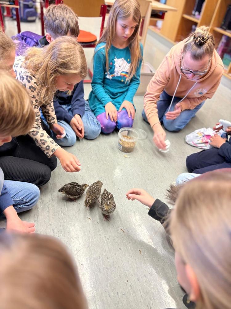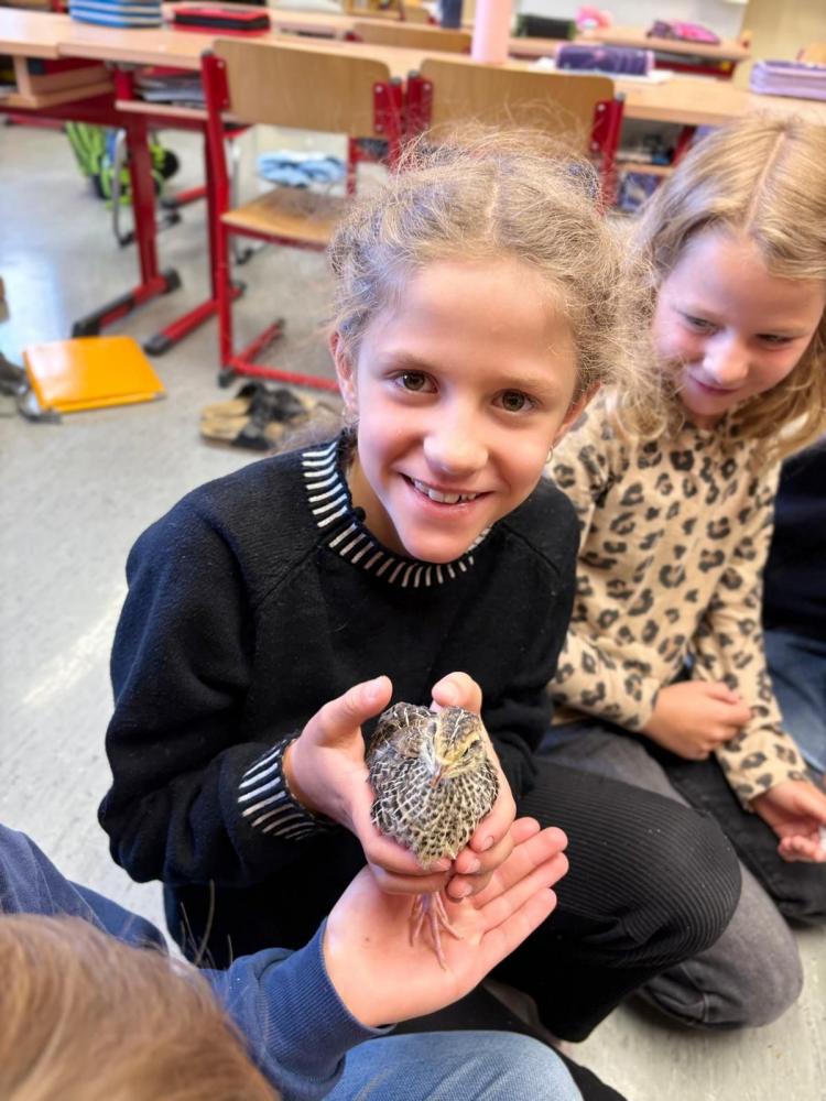 Die 3b durfte am heutigen Tag einen ganz besonderen Besuch begrüßen: Die Eltern eines Schülers kamen mit ihren kleinen Wachteln zu uns in die Klasse. Die jungen Tiere waren erst kurz zu Ostern geschlüpft und sorgten sofort für große Begeisterung bei den Kindern.