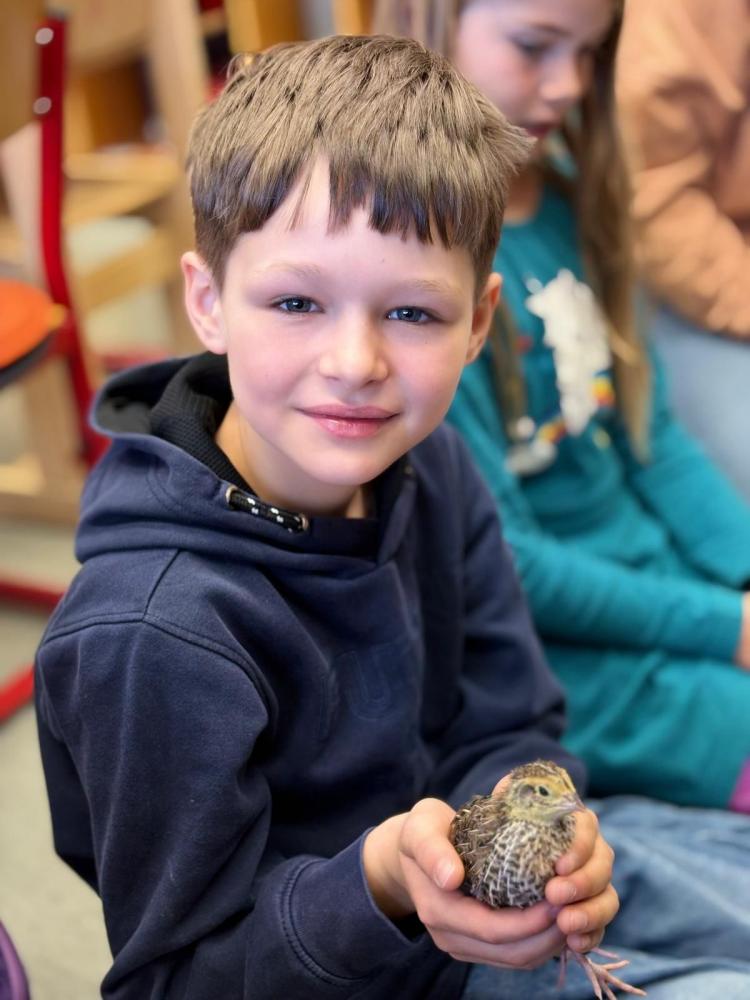 Nachdem sich die Wachteln verabschiedet hatten, beschäftigten wir uns noch genauer mit dem Thema und erfuhren viele spannende Dinge über die Haltung und das Leben dieser besonderen Tiere. Wir lernten, dass Wachteln gerne in Gruppen leben und ausreichend Platz sowie Versteckmöglichkeiten brauchen, damit sie sich sicher fühlen. Außerdem mögen sie Sandbäder zur Gefiederpflege und verbringen viel Zeit damit, am Boden zu scharren und nach Futter zu suchen. Wachteln sind neugierige Tiere, die vor allem Ruhe, Schutz und eine artgerechte Umgebung benötigen, damit sie sich wohlfühlen.