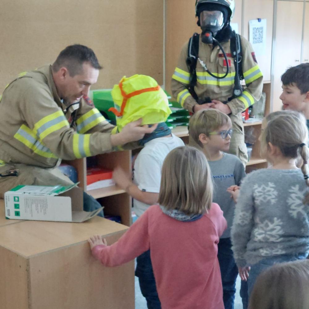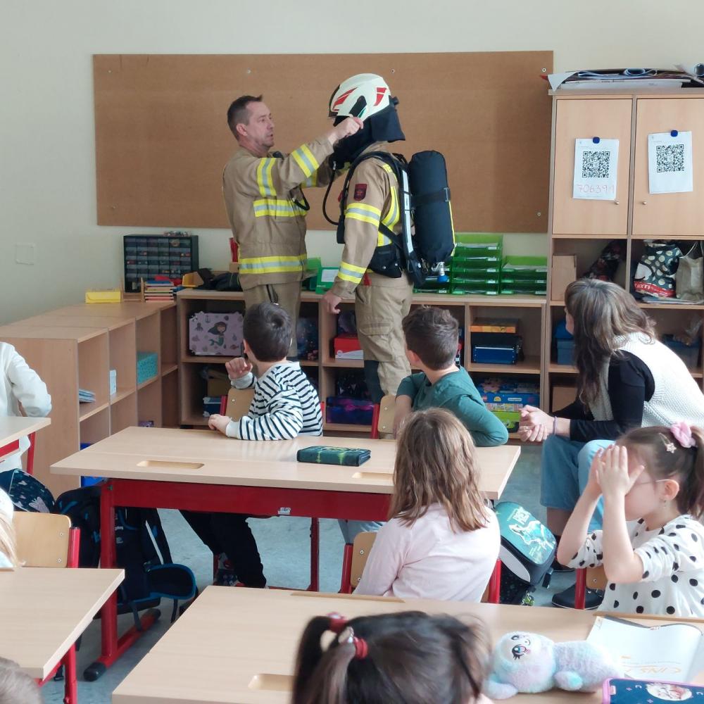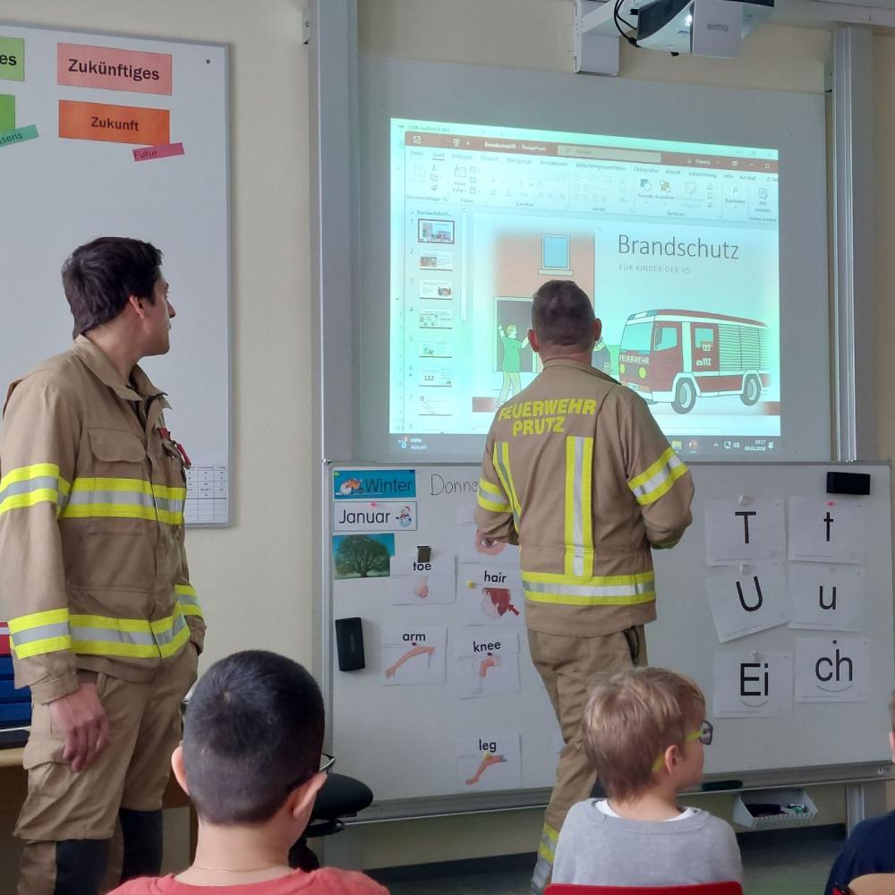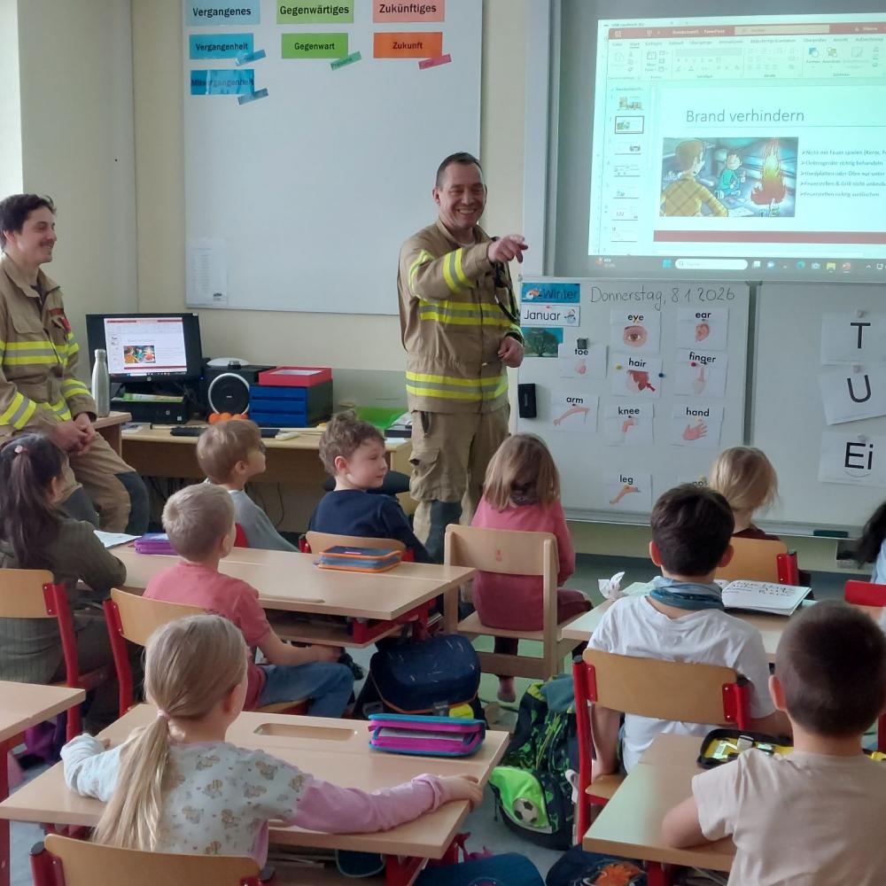 Am 9. Jänner bekamen wir Besuch von Feuerwehrkommandant Mario Jäger und Atemschutzfeuerwehrmann Alexander Kofler. Ihr Ziel war es die Kinder auf die Gefahrenquelle Feuer aufmerksam zu machen. Zuerst gaben sie uns wertvolle Tipps zur Brandvermeidung. Danach wurden wichtige Verhaltensregeln im Brandfall in der Schule erarbeitet.